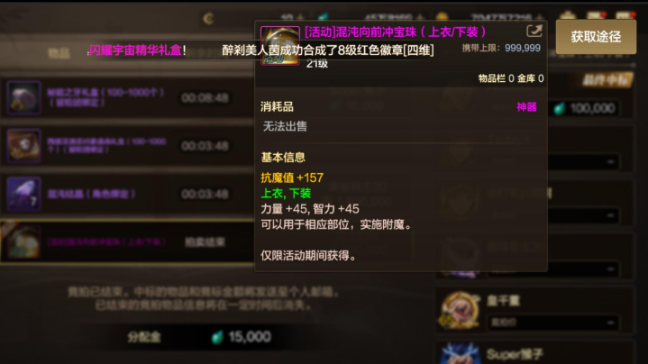 这次奥兹玛竞拍增加了幸运符,变换石,混沌之息等材料。另外还有一次性强化器和各种混沌向前冲专属宝珠,而这些宝珠让很多玩家中招了,大家竞拍这些宝珠的时候可千万要注意了,不要买错了宝珠不然那就亏大了啊。