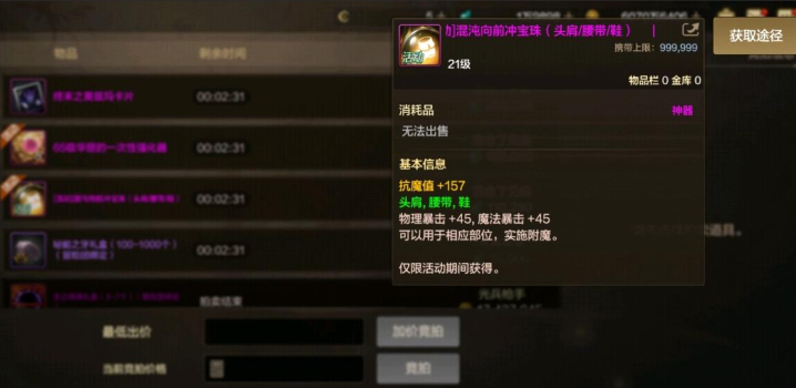 不过如果大家竞拍出现了头肩的暴击宝珠,那么赶紧拉满最高价格来竞拍,即使是10万泰拉竞拍到这个宝珠那么也是赚大了啊。