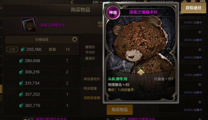 而再来看下小熊卡,其属性也是增加暴击45点,抗魔增加157点,这和竞拍宝珠的属性是一模一样的啊。而小熊卡虽然降价了,但也是要20多万泰拉的。而这竞拍宝珠最高竞拍价格就是10万泰拉了,这相当于大家花半价就能买到小熊卡了啊,这放在以前根本想都不敢想的。